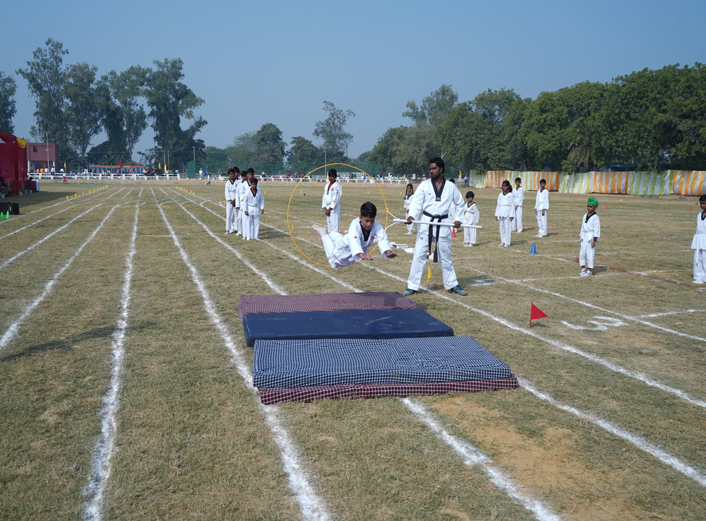 Sports Day Highlights: Our talented students showcased exceptional sportsmanship, athleticism, and team spirit in a day filled with thrilling competitions. From heart-pounding races to skill full displays of the drills, P.T., Pyramids, Parade and cultural events on the field, our young athletes left us in awe.