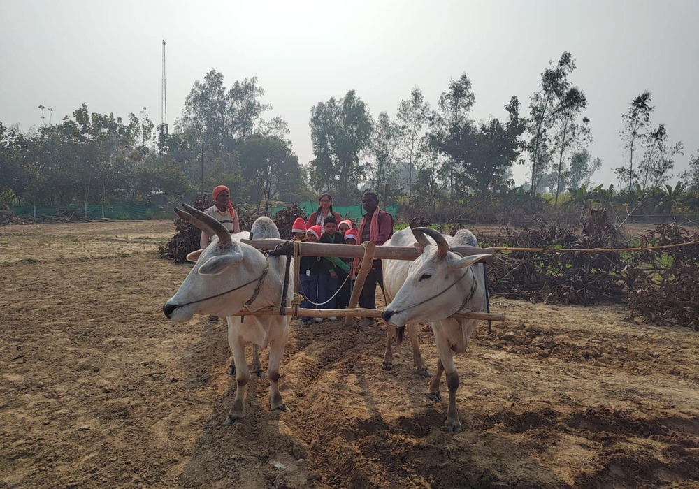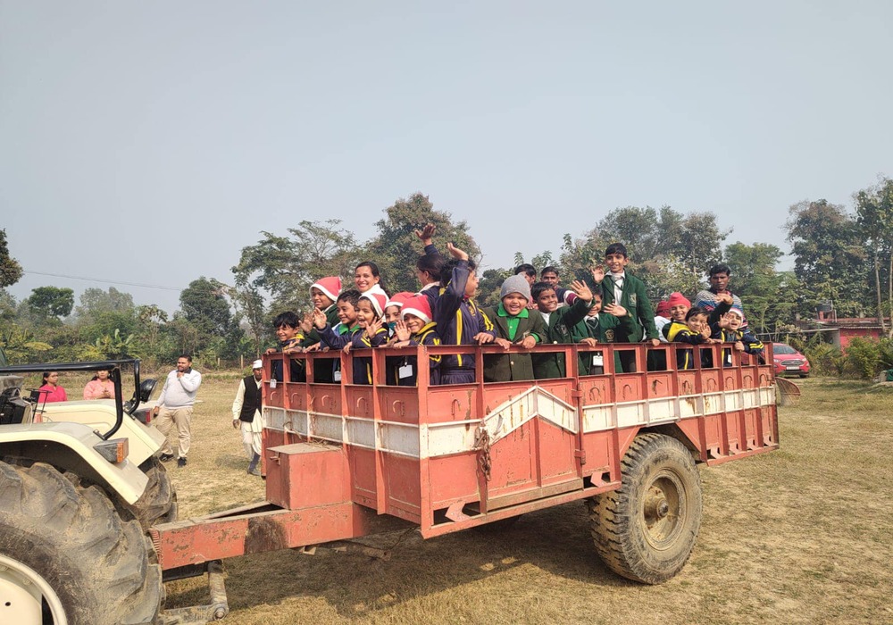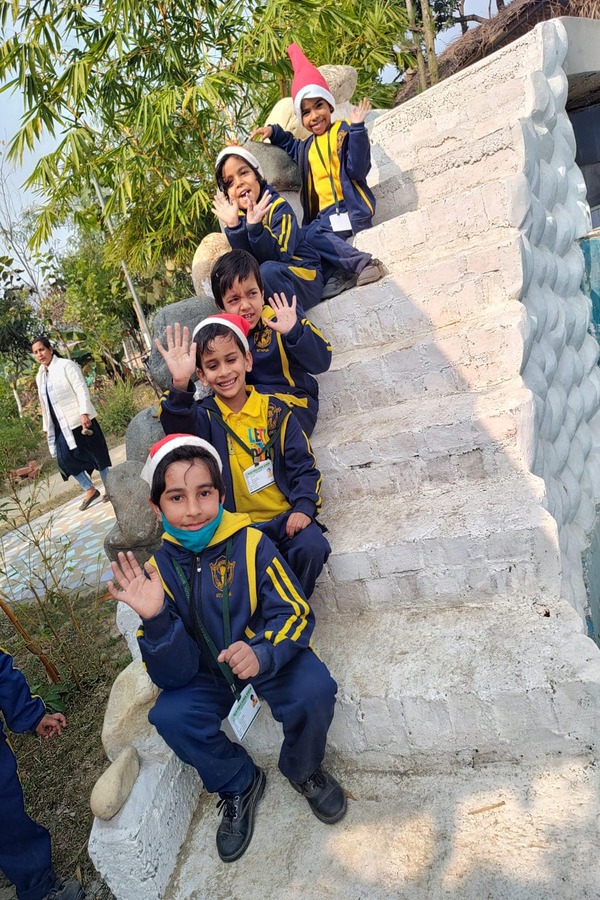 Embracing the beauty of nature, the Junior Wing of Delhi Public School, Sitapur, embarked on an exhilarating journey to AALOK FARMS for a Christmas celebration like no other! The day unfolded with anticipation as our enthusiastic students planted various saplings, guided by our dedicated teachers who shared insights into the importance of tree plantation. A lively walk around the farm revealed a tapestry of trees, and the students were fascinated by the greenhouses. Hands-on activities immersed them in rural life, offering a glimpse into the wonders of nature. Amidst the scenic beauty of AALOK FARM, our young ones enjoyed a delicious lunch, savouring the flavours of the season. The surprise entry of Santa Claus and the cheerful tunes of Christmas carols added an extra layer of joy to the festivities, making it a magical experience for our students.